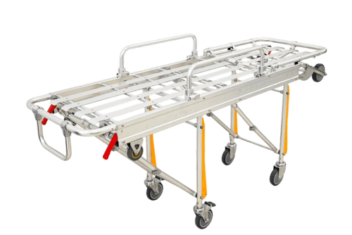 ambulance stretcher is made of high strength aluminum alloy thick wall tubing.
