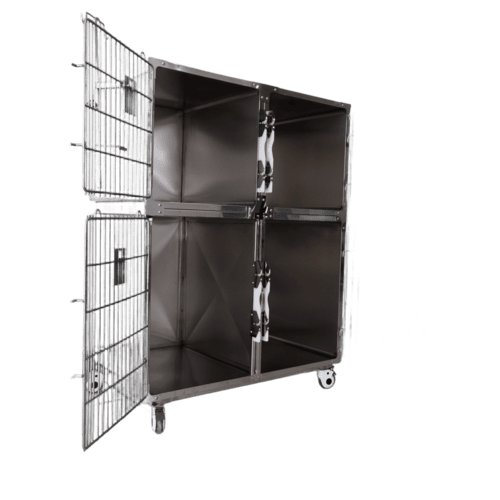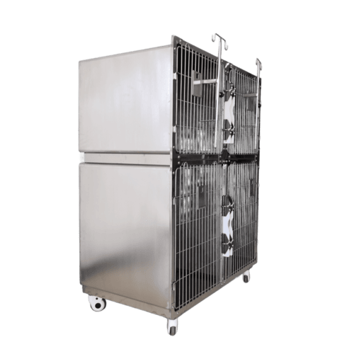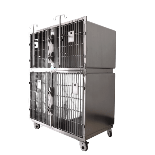 Overall 304 stainless steel material, anti-corrosion, acid-proof and rust-free, cage material thickness of 1.2mm, cage door with a diameter of 8mm and 6mm steel wire composition, the bottom mobile wheel using high-strength medical universal brake wheel.