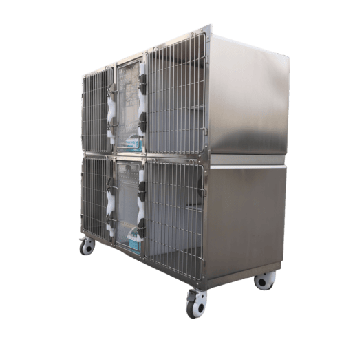 The main body 304 stainless steel material, anti-corrosion, acid-proof and rust-free, cage material thickness 1.2mm, cage door with diameter 8mm and diameter 6mm steel wire composition, the middle partition and cat jumping board made of high-strength acrylic board. The bottom moving wheel is made of high strength medical universal brake wheel.