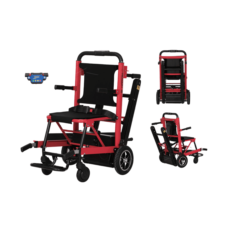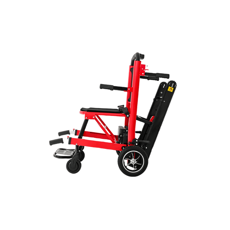 The stair climbing wheelchair is equipped with a tracked chassis that can climb stairs steadily. It is electrically powered and equipped with a high-capacity battery that supports long-term use. It is suitable for users who need to move frequently in buildings with stairs, such as multi-story residences, public places, or hospitals.