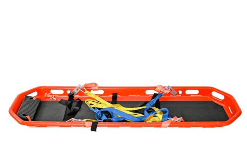 Orange Rescue Basket Stretcher Constructed of high-density polyethylene and aluminum framework for uniform strength throughout – reducing splintering or cracking.
